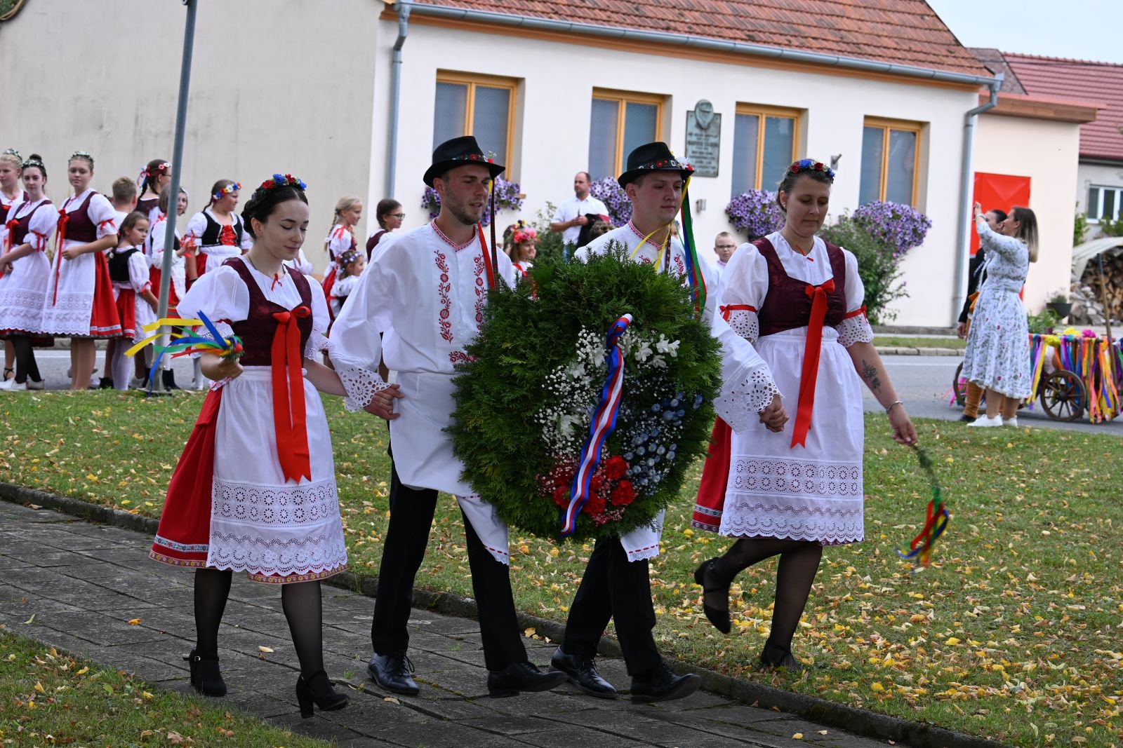 Hodová neděle byla již tradičně zahájena vyzvednutím posledního páru Vojty Frolce a Beaty Staňkové, kteří se pro tento den ujali vedení celé chasy. Po krátkém požehnání otce Petra Václavka všem občanům i celé obci u pomníku se celý průvod přesunul na taneční parket. Pod májou proběhlo zavedení i tanec krojovaných párů a následovala volná zábava, při níž nás doprovázela dechová kapela Dubňanka. Počasí nám navzdory předpovědi přálo a tak jsme si všichni mohli užít krásný den. V závěru odpolední zábavy přišlo na řadu již očekávané překvapení – nedělní pohádka, které předcházely několikaměsíční nácviky. Úsilí všech zúčasněných bylo odměněno úsměvy i nádherným potleskem diváků.