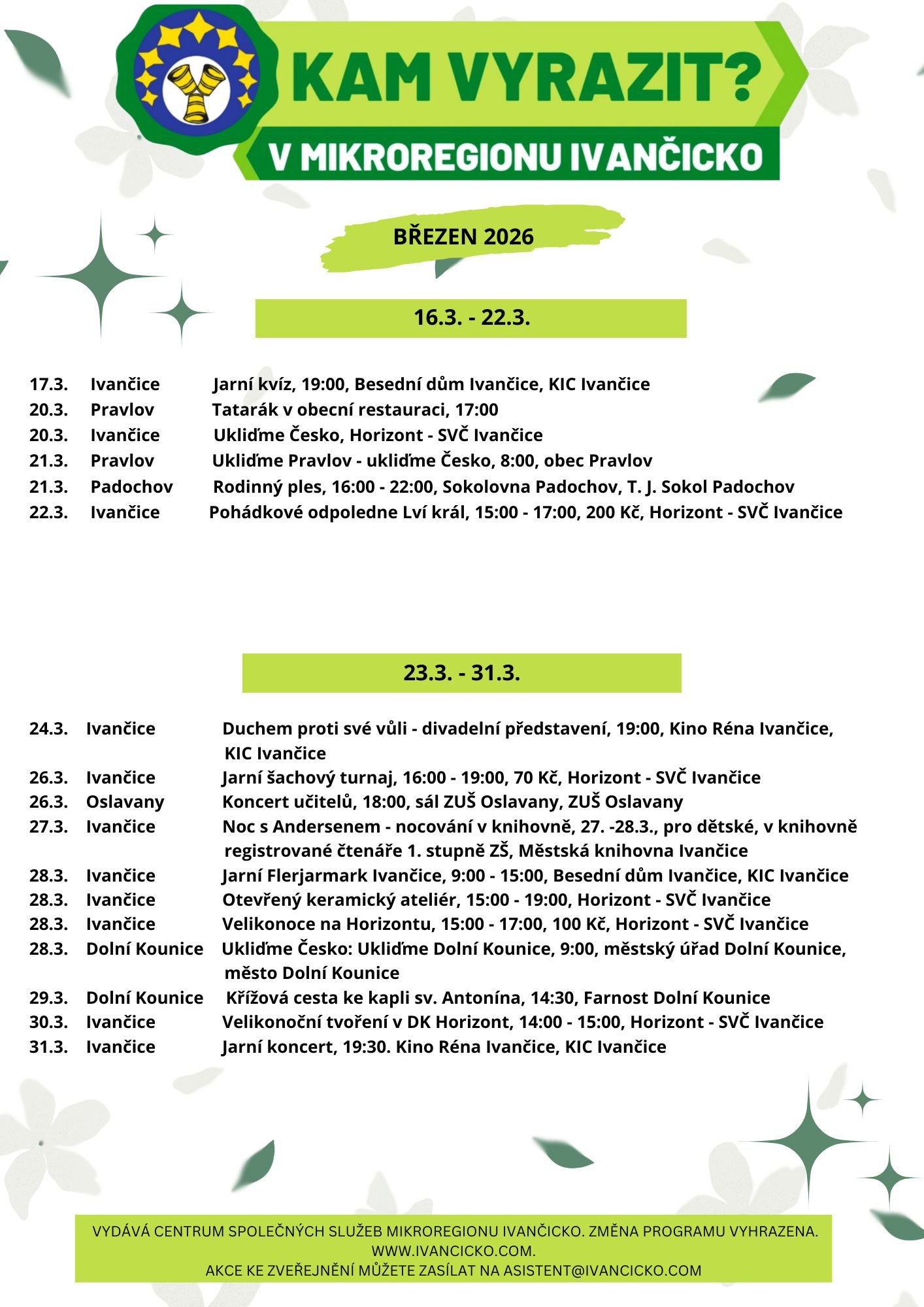V příloze zveřejňujeme přehled akcí v Mikroregionu Ivančicko na měsíc březen.