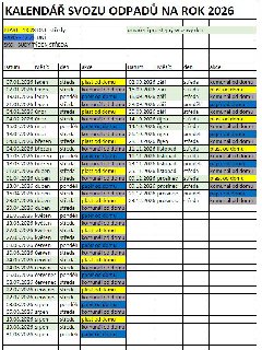 V příloze zveřejňujeme ke stažení kalendář svozu odpadu na rok 2026.